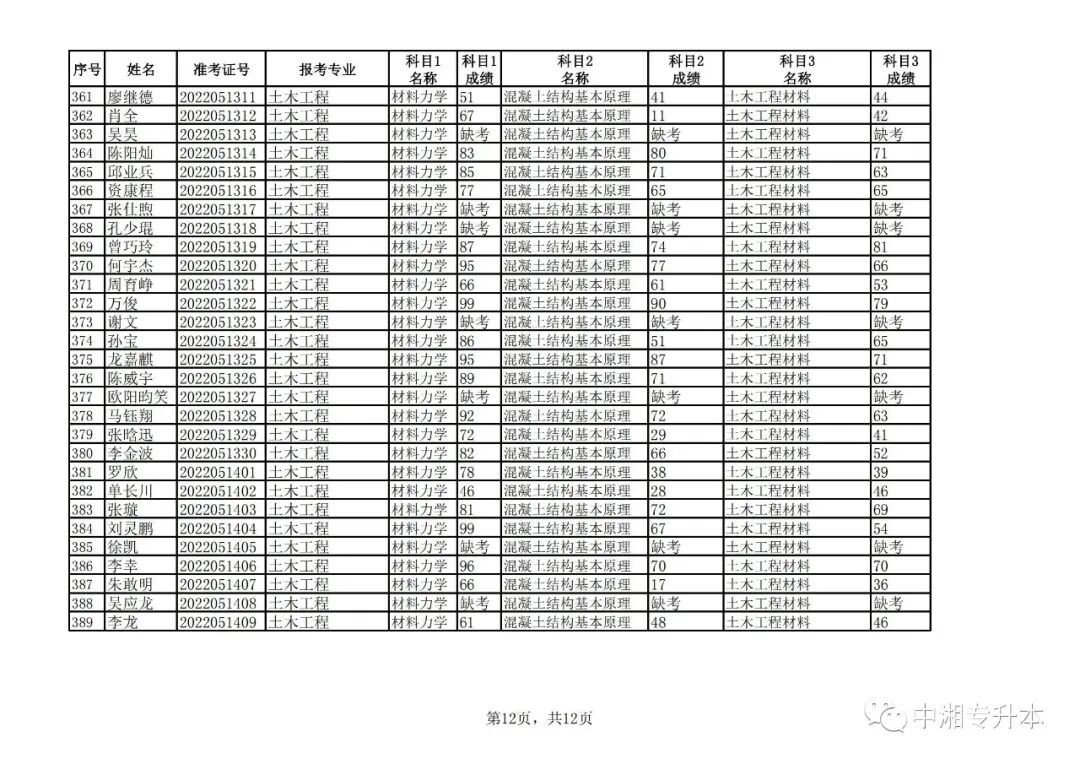 我校“专升本”考试(笔试)已于5月14日结束,现将考试成绩公示如下。公示期为2022年5月16日至5月18日。凡对考试成绩有异议的,可在成绩公布3天内向教务处提交复核申请。申请复核的考生请将《专升本考生成绩复核申请表》(见附件1)电子版于5月18日上午12点前发送到邮箱:16144713@qq.com。我校将按照教育部、国家保密局印发的《教育工作中国家秘密及其密级具体范围的规定》以及湖南省教育厅发布的《关于做好我省2022年普通高等学校专升本考试招生工作的通知》等相关文件要求和规定,组织相关部门和人员对申请复核考生的试卷卷面总分进行复核,复核结果将在3日内告知学生。