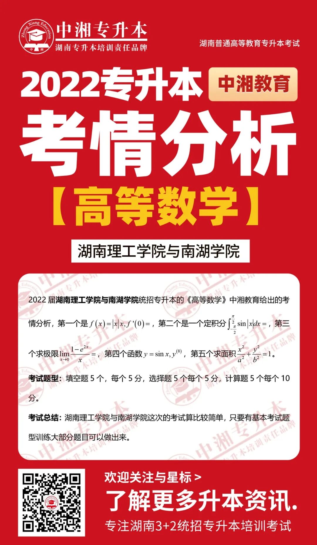 专升本相关问题请关注“中湘专升本”