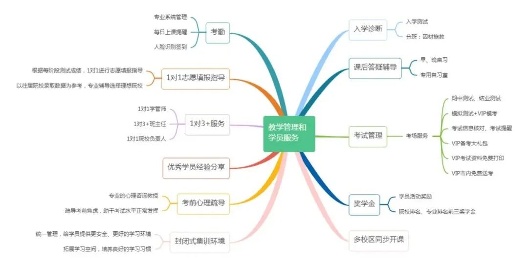 中湘集训营每班配备1名全职班主任,全程陪伴呵护学员,及时了解学员的学习情况,督促引导学员按时完成作业,每天安排值班老师、教务巡查课堂纪律,起到双管齐下,齐抓共管的良好效果。