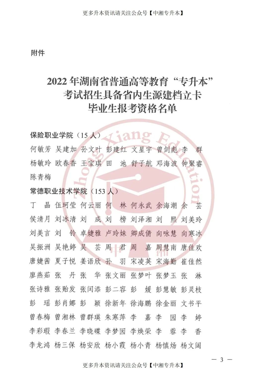 附件:2022年湖南省普通高等教育“专升本”考试招生具备省内生源建档立卡毕业生报考资格名单