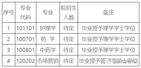 第九条根据上级有关要求及学院自身办学情况,2022年开放护理学、药学、中药学、市场营销4个专升本招生专业。原则上考生须按照省教育厅《湖南2022 年普通高校专升本对应专业指导目录》规定,依据高职(专科)所学专业选报对应本科专业。学院具体招生专业如下: